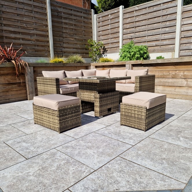 Georgia Nature Brown Corner Sofa with 2 Ottomans and Dining Table with Ice Bucket genannt